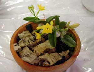 |  | Sophronitis cernua var. aurea a : 4号鉢のせいか花が小さく見えるが、 変異体と思われる良個体。(原さん) b : 2号鉢(上野さん) Sophronitis cernua c : 花が大きい。 d : e : 色が濃い。 |