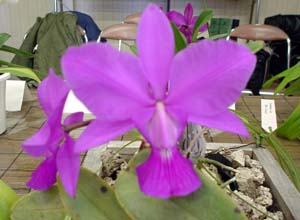 |  | ←審査結果が山崎さんから発表。 今回はCCMが2点出ました。 パフィオは4点ともHCCでした。 カトレヤ原種の出品が増えています。 |