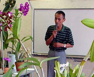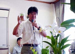 | 斉藤さんの出品花解説 . | 田亀さんの蘭菌の説明 . |