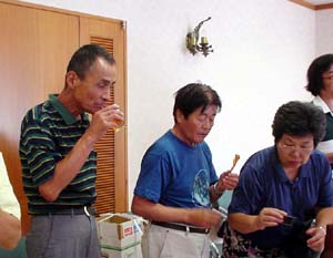 | AJOS 8月例会 労働スクエア東京(Roudou Square Tokyo) 平成14年8月11日 出席者 46名 出品株 73株 今月は会場の都合で銀座で行いました。 * All Japan Orchid Society Aug.11.2002 46 members 73 plants . | |