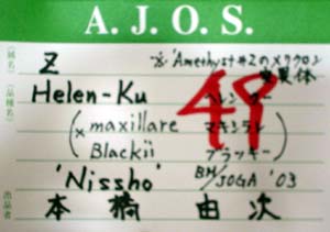 | AJOS 8月例会 労働スクエア東京(Roudou Square Tokyo) 平成15年8月10日 出席者 45名 出品株 72株 * All Japan Orchid Society Aug.10..2003 45 members 72 plants . | |
