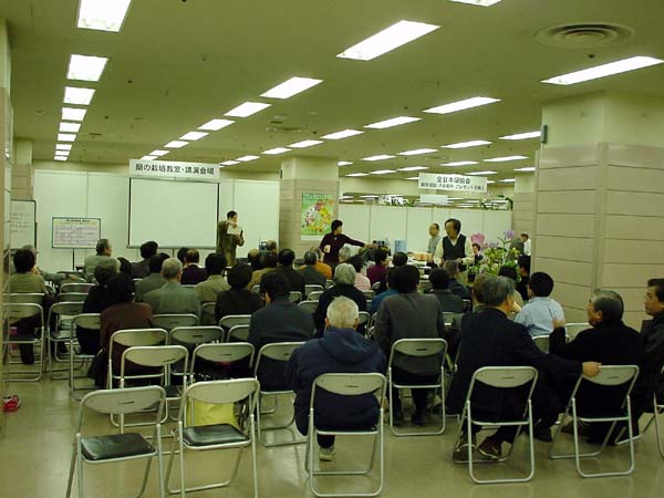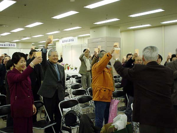 | 全日本蘭協会 1月例会 池袋サンシャイン4階 (Ikebukuro Sunshine Tokyo) 平成17年1月9日 出席者 58名 出品株411株(例会27株 蘭展384株) * All Japan Orchid Society January. 9. 2005 58 members 411plants 今回は洋蘭展の会場で行いました。 株は蘭展に出品していたので、例会展示株は数えるばかりでしたが、 それでも審査入賞花(AM2株、HCC2株)が出たのは凄いですね。 . | |