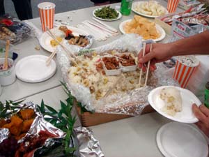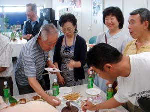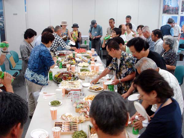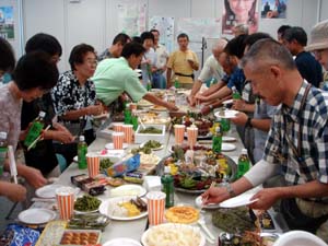 | All Japan Orchid Society August.13. 2006 Summer Party 今月は行事を早く終わらせて『持ち寄り納涼会』 を企画致しました。 各地ご自慢の“美味しい物”に舌鼓を打ちながら楽しい時間となりました。 夏は会員の一品持ち寄り会です。 . | |