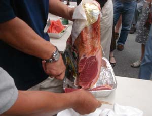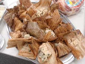 | 料理のほんの一部です。     ↑ちまき ↓パルマの生ハムも人気でした。 | |
