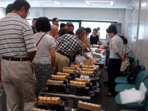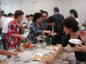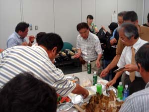 |  | お腹がいっぱいになった所で お待ちかねのフリーオークションです。 目玉商品の本漆は海外会員へ・・ 外れなしのくじで おみやげも確保できて 納涼会もお開きとなりました。 |