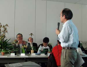 | 最初のテーマは、大場さんによる 「東京ドーム蘭展の最新情報」 大賞のリカステでは、斉藤さんのやりとりで つくばのGC苗の残り物と判明・・ |  |