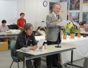|  | <定時総会風景> 議事進行役の 斉藤会長と原副会長 (大きい画像) |