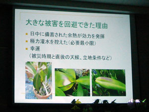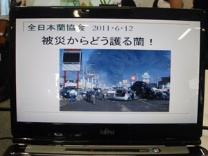 | メインテーマ『被災からどう護る蘭!』と題して、望月氏の被災体験談 | |