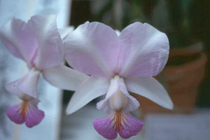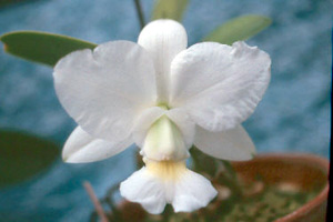 | C. nobilior semi-alba x self 今から10年位前に苗がブラジルから入ってきました。 兄弟株で入賞花もいくつか有ります。 個人的な意見としては、 花の全体の印象、株の感じから ワルケリアナが 入っているのではないかと思っています。 | C. trianaei 'マッサンゲアナ' . |