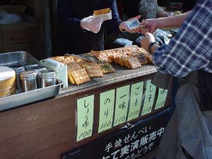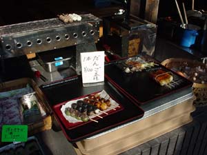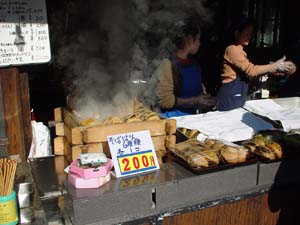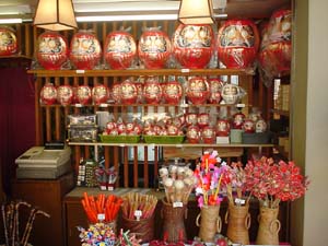 |  | ↑ ダルマ市でも有名です。 ↓ 右手前の茶色が名物のそば饅頭です。 10年前迄はこれしか無かったのに… |