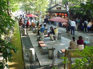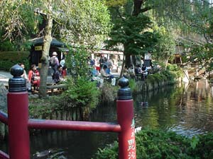 | ペットのお墓の入り口。 旗に飼い主とペットの名前が入っていました。 | 神代植物園の深大寺門 . |