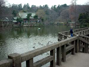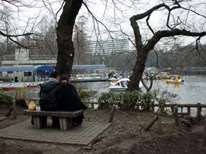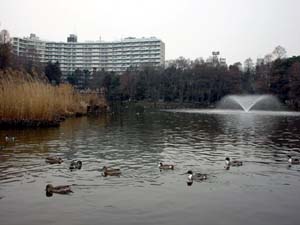| JR吉祥寺駅から徒歩5分の公園は 東京では有名なデートコースです。 二人でボートに乗ると「分かれる」という 言い伝え(?)があります。 | 井の頭公園は、実はこんな形をしています。 左半分は池に面した散策コースですが、 道を挟んだ右側には動物園があります。 |