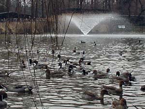 | あの時ボートに乗っておけばと思うのは 私だけでしょうか? (^-^;) | 畔には桜の古木が立ち並び、桜の名所でもあります。 今は「カモ」の季節です。 |