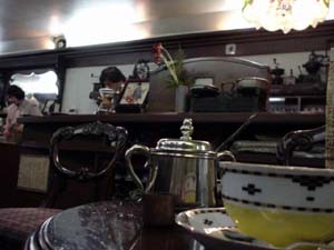 | 表通りから公園に入る道に面して、気を付けないと やり過ごしてしまう小さな喫茶店があります。 | ここがコーヒー通には有名な、あの「モカ」なのです。 |