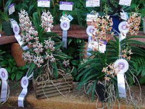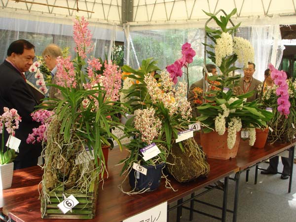 | 地元のバンダ・ラメラタ(V.lamellata)の大株が多数出品されていた。 | |