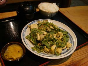 | S氏が注文したゴーヤチャンプルー | 私は、20年ぶりの沖縄そば・・ |