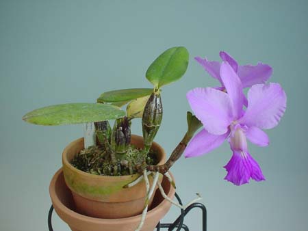 | C.walkeriana  ( mairipotaba ) mairipotaba とはゴイアス( Goias )州都の ゴイアニア( Goiania )の近くの地名です。 葉が丸く、バルブも太いタイプです。 . | |