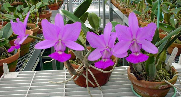 | 葉付きバルブに着花(5号鉢) | 花バルブに着花(4号鉢) |