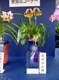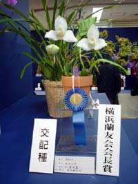 | いずれも素晴らしい株でした。 右下は全日本蘭協会賞。 . |