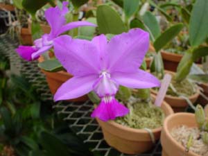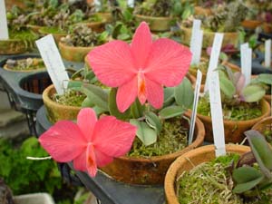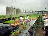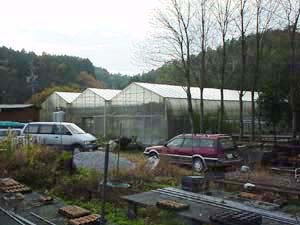 | 関ヶ原から少し東の山あいの温室。左がカトレヤ系、右がソフロ系温室。 季節には、いのししが出没するらしい… . |