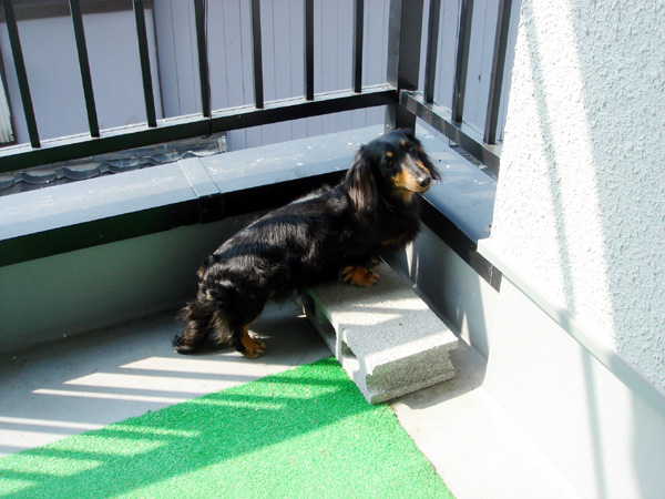 | 朝9時ころに屋上に出しておくと用を済ませてくれます。 30〜40分ほっておくと大体外を眺めています。 |