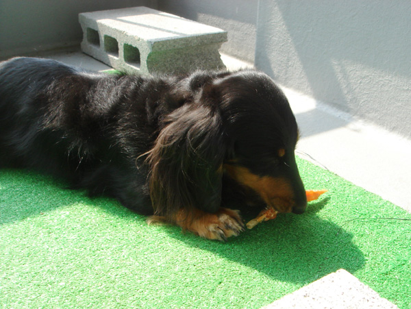 | おやつは昼過ぎに一回だけ、ササミガムがお気に入りですが 中国産なのでチョット心配です。 |
