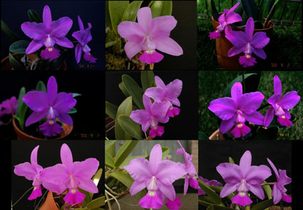 7年育てて現在3鉢。 小株(左上)→大株(右下) の順に写真を並べました。 色の違いはデジカメ、 プロビア、ベルビアの差です。 リバーサルフィルムをお使いで。 う〜ん どれがどれだろう〜? 真ん中の列がデジカメで 両端がリバーサルじゃないですか? 研究熱心なのは 蘭だけじゃなくって ですね。 さすがクール・ガイ (^^)V 楽しい写真どうもありがとう From Ron |