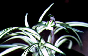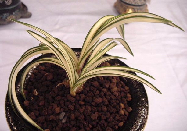 出芽は白地に縞斑を表わす。次第に白中透け斑柄になる天冴え。