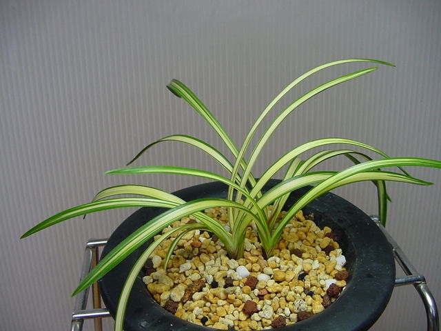 出芽は黄白色、成長するにつれて白黄色の中押し縞を鮮明に現す。