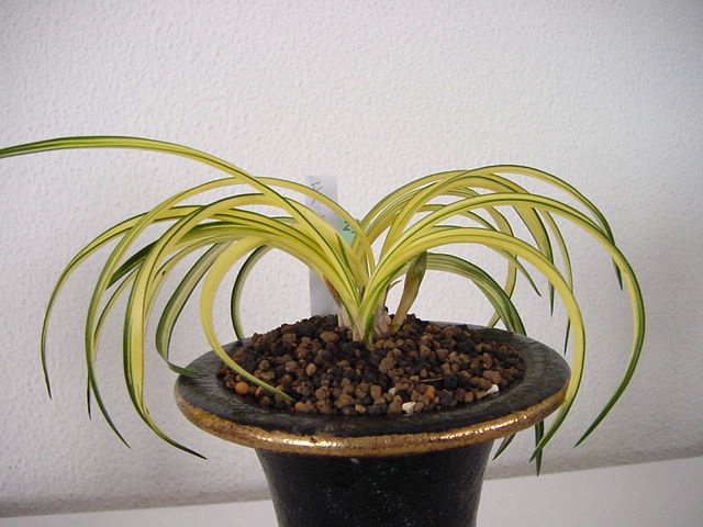 出芽は桃紅色にあがり、生長するにつれて白黄色の中押し縞になる。