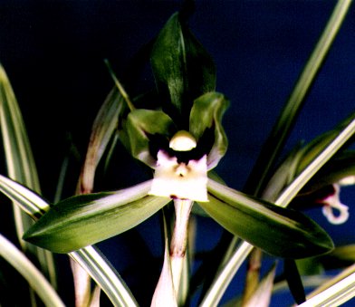 葉面に白黄色の中押し縞を表わす。