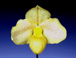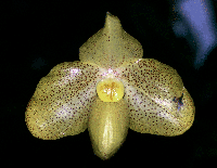This is ny own breeding in 1995 and flowered in Dec., 1999 at the first time. I have several selected clone already like this , NS 11.5 cm, PW 5.2cm.Paph. ( Psyche x armeniacum