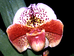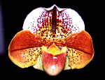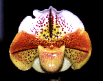 I want to introduce the new hybrid that I made 5 years before. I had nice results as follows. This hybrid is between Paph. Yadorigi and Paph. Acclamation. Paph. Yadorigi was registered by myself. In this hybrid, I have never seen waste flowers. It must be very nice parentation. I'll introduce some of the selected clones. Recently, I registered this hybrids, Paph. Ikazuchi. Ikazuchi means ' Thunder ' in Japanese.
