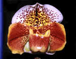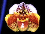 From the interested hybrids that was breaded by myself in 1993, I have selected 3 of fine clones in this season and want to introduce them. But before taking photograph, I have used the top 2 of them for new breeding already. So, I cannot introduce all of them except the worse one that was damaged in the lower dorsal. This hybrid is between the selected Tan colored modern hybrids, Paph. Shawnee = Winston Churchill x Inca and Paph. Psyche ( bellatulum x niveum ). The clone of Paph. Shawnee is made by my self too. This hybrid has been registered by the name of Mrs. Kayoko Tanaka newly.