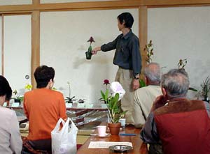 | 五島さんと大谷さんの出品花の解説コーナー . |