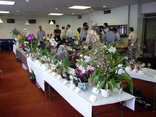 AJOS 8月例会 平成12年8月13日 お盆休みの為か50数名の出席でした。 審査・花の解説・蘭展案内・人気投票のあと 恒例の納涼会で蘭談義に華を咲かせました。 (静岡らん展2000の案内は、Orchid Show をご覧下さい。) . |