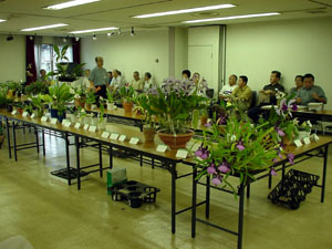 AJOS 8月例会 平成13年8月12日 向ヶ丘遊園 ローズガーデンハウス 出席者:55名 出品株70株 . |