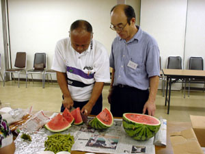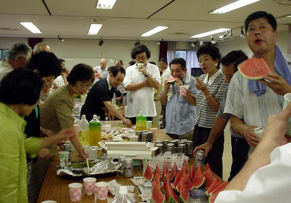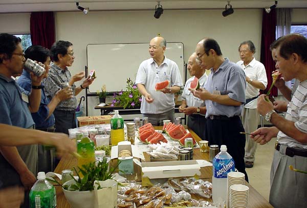 | 恒例の納涼会。古山さんも手慣れた手つきでした。 | |