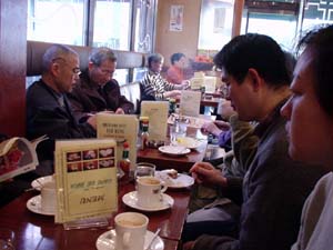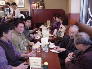 中島編集長を中心に2年の任期を無事終了し 苦労した方も、そうでない方も 思い出話しに花を咲かせました。 中国からの留学生の李さんも加わって 話題は、蘭から建築まで 限りなく広がっていきました。 中島さん皆さん、ご苦労様でした。 |