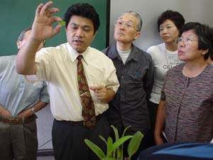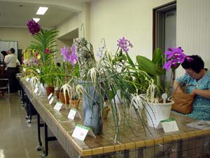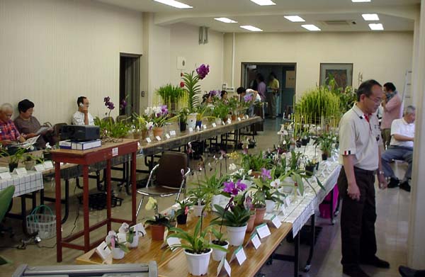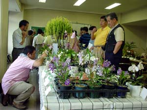 AJOS 7月例会 東京信濃町 東医健保会館(Shinano-machi Tokyo) 平成16年7月11日 出席者 56名 出品株 92株 * All Japan Orchid Society July. 11. 2004 56 members 92plants . |