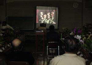 | メインテーマの「パフィオ整形花」スライド講演の東京オーキッドさん . |
