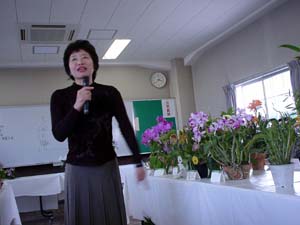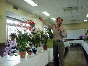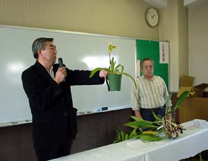 メインテーマの栽培談義には 東京ドームで大株作りの Lc.Melody Fair 'Sachi'を出品された いわき洋蘭園の波汐さん(当会会員)が 独特の語り口でその思い入れを 語っていただきました。 |