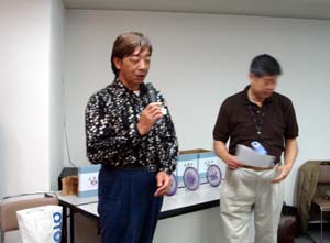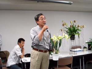 | 斉藤理事長の司会です。 | パフィオ部門の入賞解説の内田さんと諸星さん |