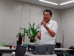 | 今月のテーマは、濱田興一氏(蘭酔会会長)の 「ミャンマーのラン自生地探訪」で、情報の少ない地域の貴重なお話を伺いました。 |
