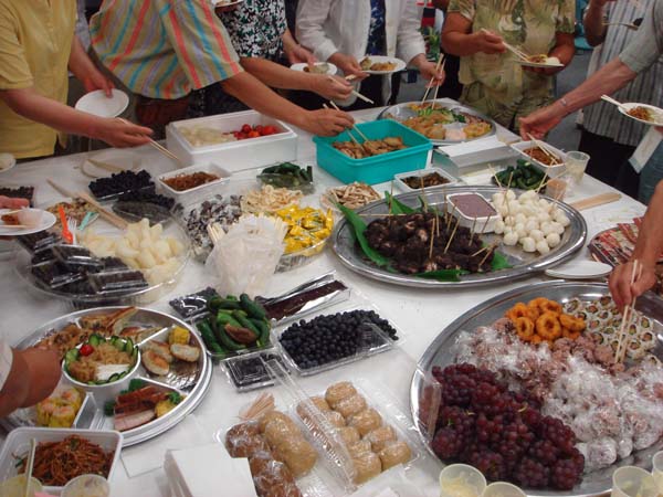 | 手作りのお団子やフルーツポンチ、焼きそばに舌鼓・・ | |