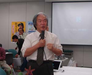 | 審査解説の坂本さん | 香り審査風景 |