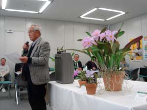 | 斉藤理事長の蘭展報告 | 田中会長の挨拶 |