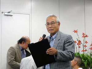 | 斉藤会長の挨拶 | 香り審査解説の井上さん |