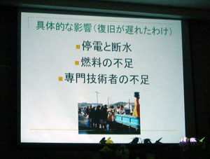 | メインテーマ『被災からどう護る蘭!』と題して、望月氏の被災体験談 | |