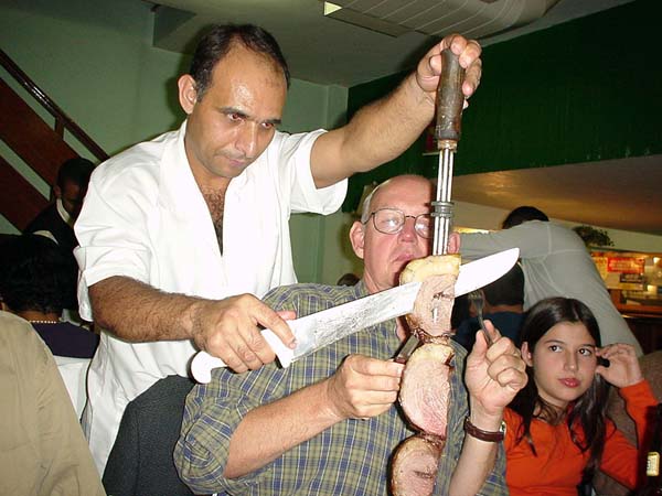 | SOBHの表彰パーティ。今年はシュハスコでした。 デンマーク系の長身のソレンセン氏は食べる量も半端じゃない・・ 右側はパウロシーザー氏の美人の奥さん似のお嬢さん。 . |